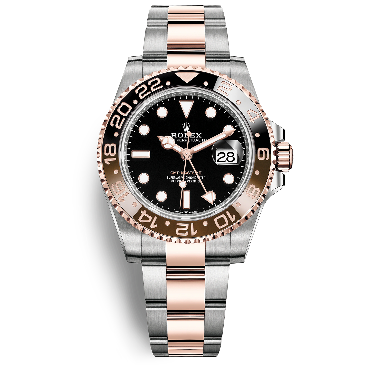 Rolex Oyster Perpetual GMT Master II 40mm sở hữu kích thước mặt lớn cùng thiết kế mạnh mẽ tôn lên vẻ quyền lực cho phái mạnh. Sự giao thoa giữa màu kim loại của thép Oyster và điểm nhấn Everose giúp chiếc đồng hồ có một tổng thể hài hòa về màu sắc.